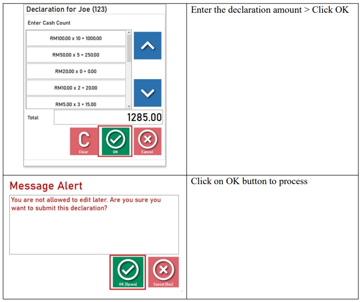 End Shift Closing is a must to perform by individual cashier at the end of their shift.