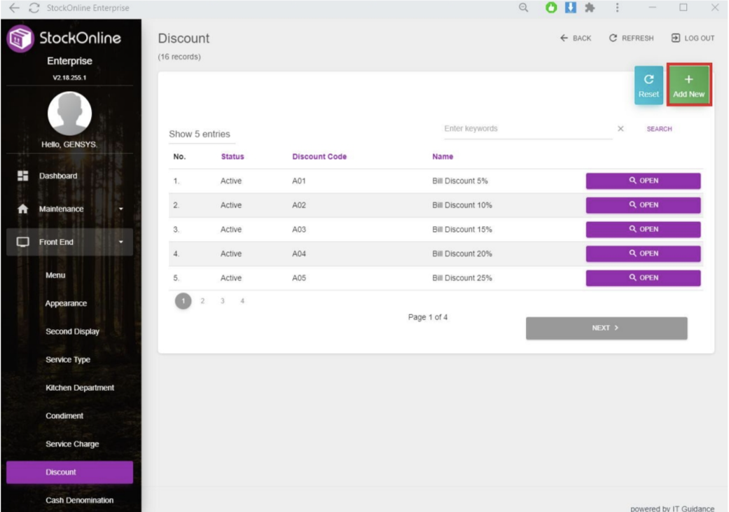 - Choose [Discount] Under [Front End] > Click [Add New]