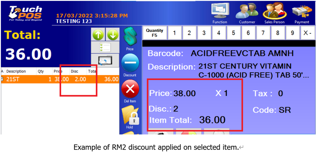 *you will see the changes already applied onto selected items. The details of discount also be displayed on the screen beside the item price.