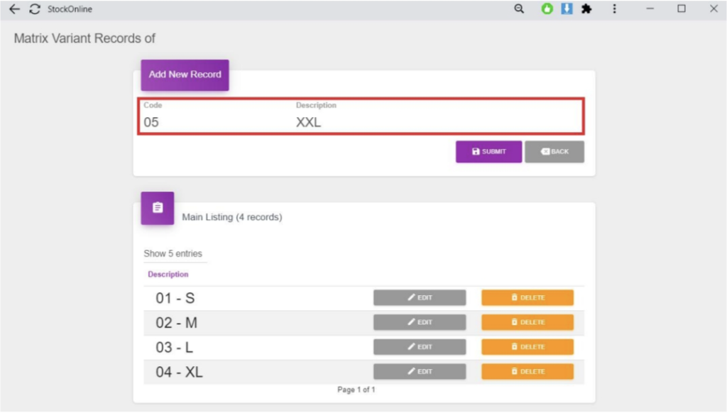 ~ To add new record to Matrix Variant ~