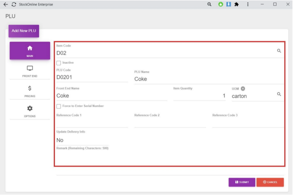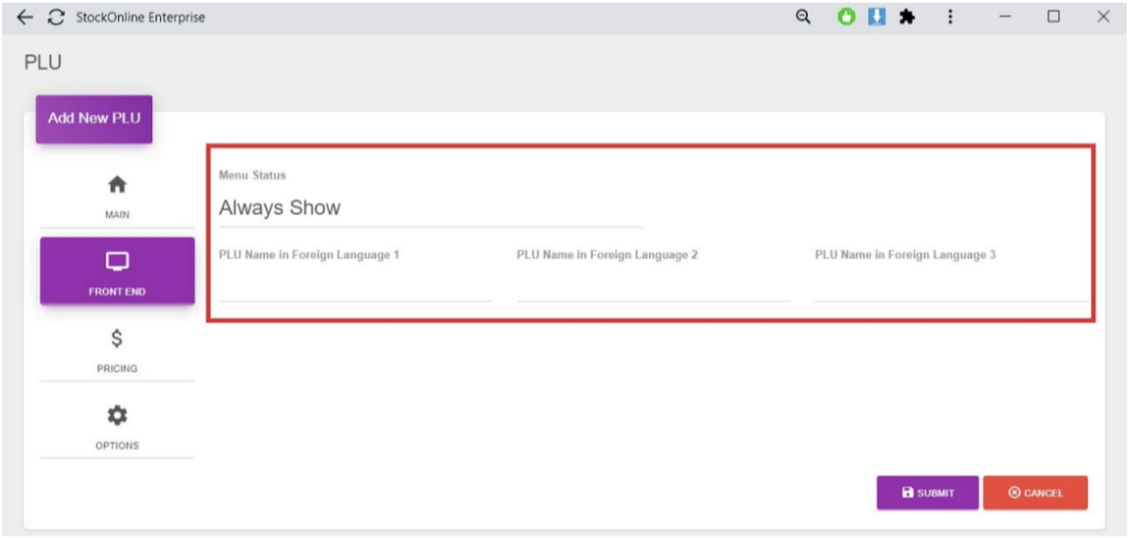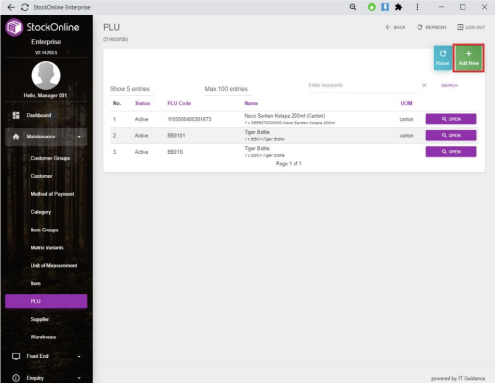 - Choose [PLU] under [Maintenance] > Click [Add New]
