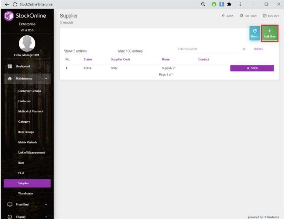1. Choose [Supplier] > Click [Add New]