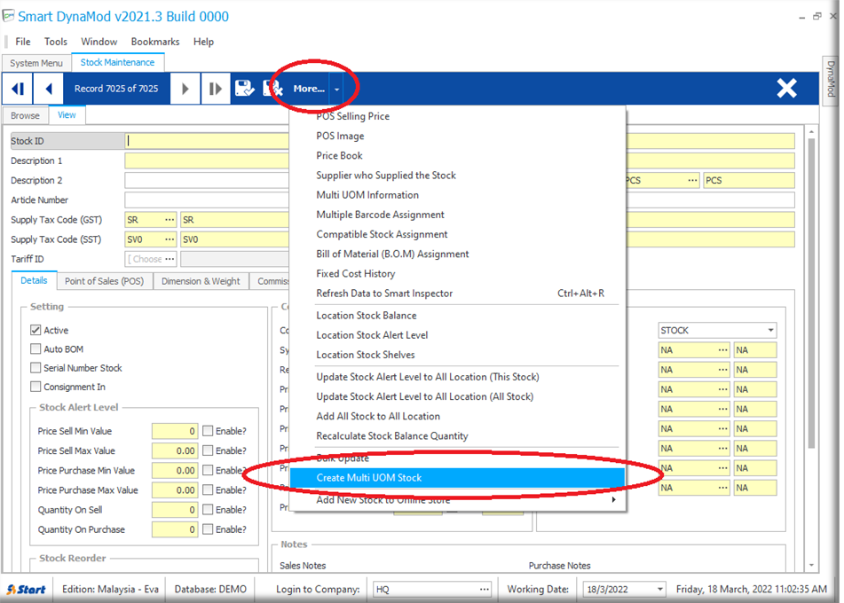 Click Start, 2. Inventory Module, 1. Setup, 1. Stock