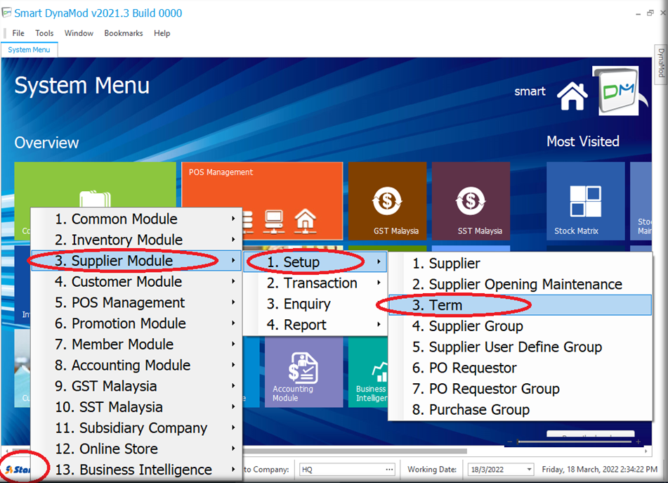 Start, 2. Supplier Module, 1. Setup, 3. Term